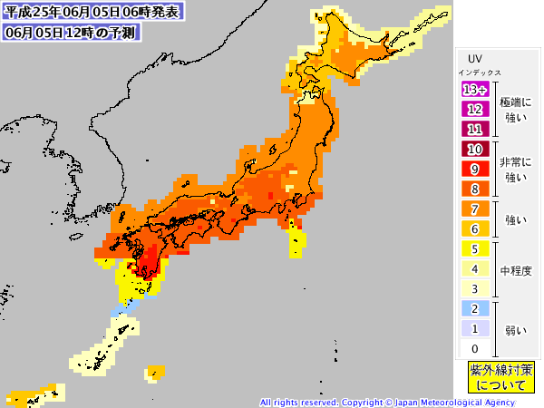 沖縄を除いてほぼ全域がオレンジ~赤です。