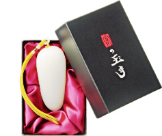 スッキリと手のひらに収まる石の重みで顔にアイロンをする。