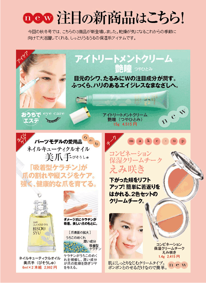これからの乾燥時期には目元クリームも保湿チークも欠かせないアイテムです。