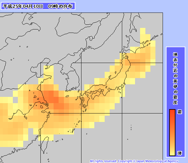 黄砂にすっぽりと覆われるのは今年初だそうです。