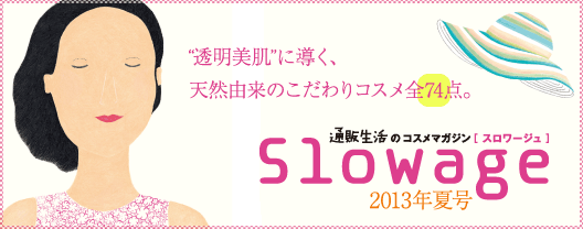 通販生活のコスメブランド、Slowage(スロワージュ)。「天然由来成分」「非石油系処方」にこだわってメーカートップアイテムをそろえています。